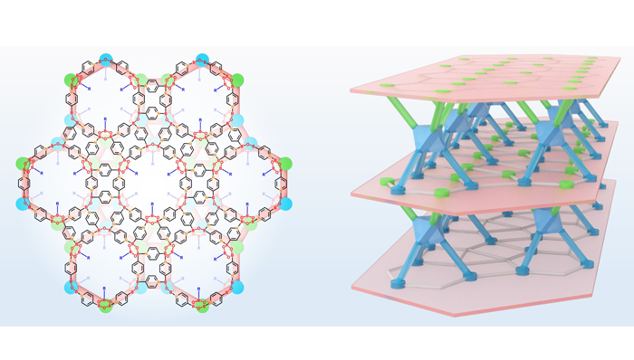 金属有机框架(MOF)的合成主要以金属离子与有机小分子作为构筑单元,所得框架中无论是无机组分还是有机组分通常展现出整体无延伸性的离散型分布特征。制备拥有连续纯有机或纯无机子网格结构的MOF框架,是合成化学领域面临的一项极具难度的挑战。尽管无机子网格(例如一维及二维无限的金属氧、卤化物及磷酸盐结构等)已被作为具有无限连接性的单元来构筑MOF,但是以具备无限连接性的有机结构为构筑单元,与无机次级构造单元(SBU)协同构建MOF晶体的研究,目前尚未见报道。究其原因,在于聚合物一维有机链或二维有机层存在结构无序性,这使得它们很难成为网格材料中结构明确的构筑单元。近20年来迅速发展的共价有机框架(COF)实现了有机单元的无限且精准的排列。因此从理论上讲,将COF作为子网格引入MOF材料的设想是完全可行的。将上述想法实现,我们需要直面此类框架合成的多重挑战:COF本身无法溶解,且通常缺乏能与金属离子发生配位作用的结合基团。一锅法直接合成虽能规避溶解性问题,但仍需精心设计具有高度空间匹配性与化学反应一对一选择性的多种合成子。此外,只有对共价键合(linkage)与配位键合进行精细调控,确保多个键合反